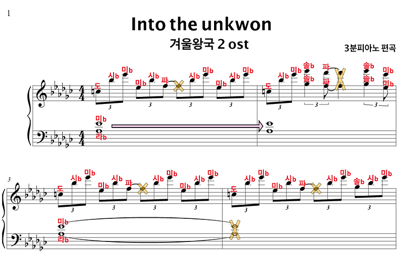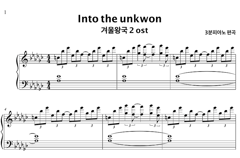 악보 게시판 겨울왕국2 Ost Into The Unknown 조금쉬운악보 2가지 By 쌤써니