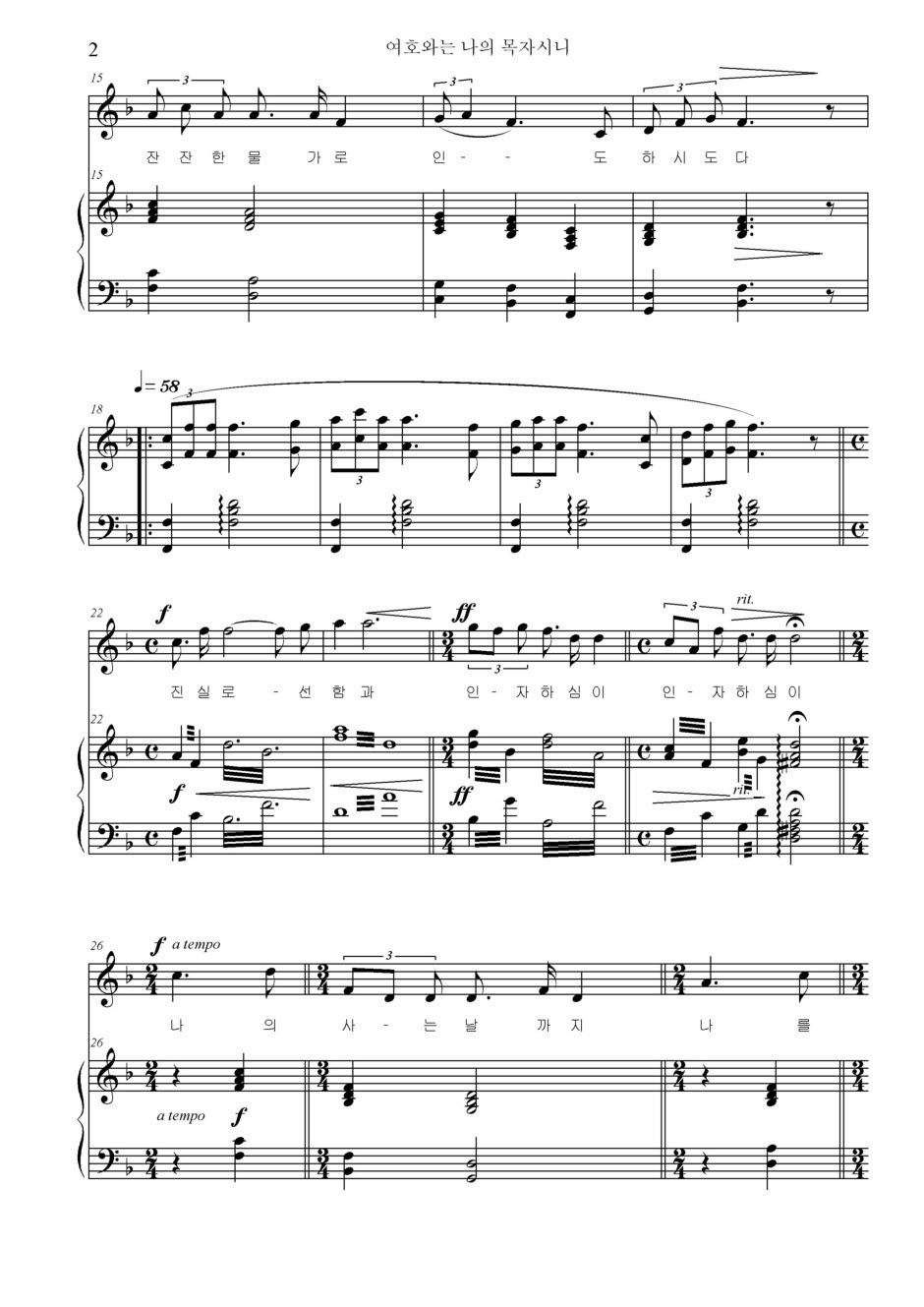 스크랩 여호와는 나의 목자시니 시편23편 나운영 곡 Sop 한명성 Ten 강요셉 악보 2b찬양