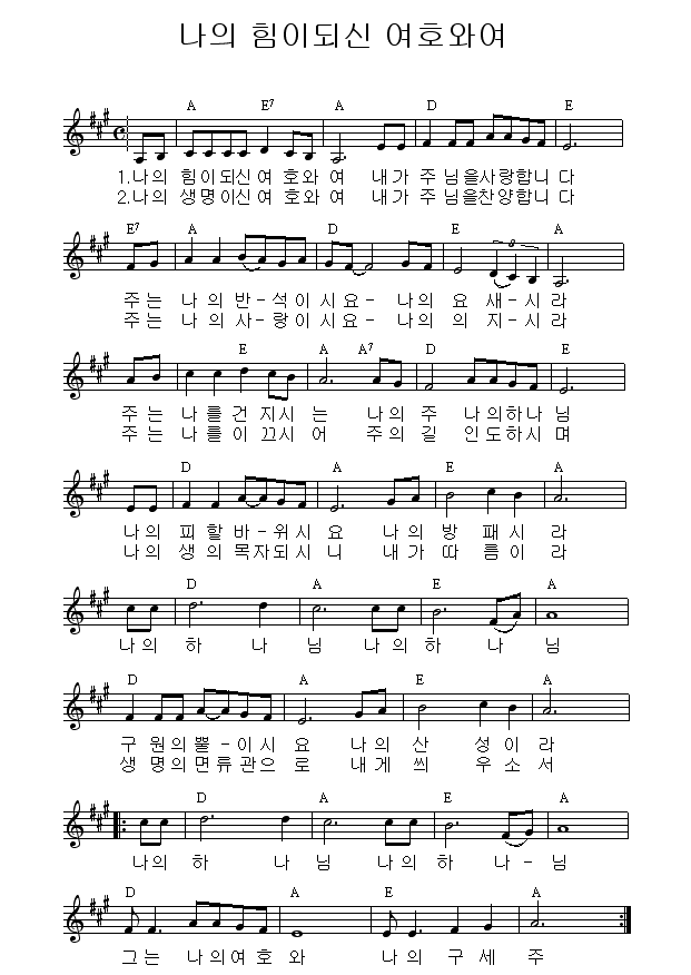 나의 힘이 되신 여호와여 가사 듣기 합창악보