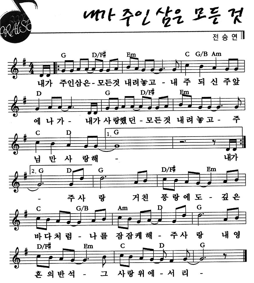 Ccm악보 G코드 내가주인삼은 내가주인삼은 모든것 내려놓고 네이버 블로그