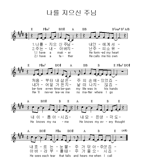 E코드 나를 지으신 주님 내 이름 아시죠 악보 가사