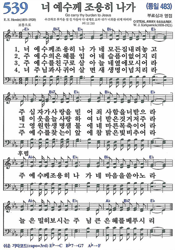 인쇄 이 블로그 전체 카테고리 글 전체글 보기. 너 예수께 조용히 나가 네 모든 짐 내려놓고 주 십자가 사랑을 믿어 죄 사함을 너 받으라 2. Stream ad free or purchase cd s and mp3s now on amazon co uk. 너 예수께 조용히 나가 네 모든 짐 내려놓고 주 십자가 사랑을 믿어 죄 사함을 너 받으라 verse 4 너 주님과 사귀어 살면 새 생명이 넘치리라 주 예수를 찾는 이 앞에 참 밝은 빛 비추어라.