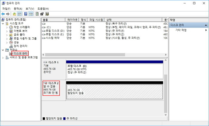 하드디스크 Ssd 인식 불가 등의 문제 디스크 초기화로 해결하기