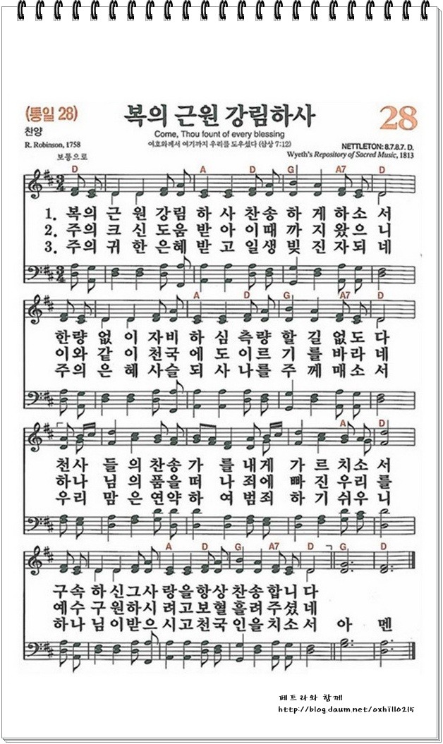 통일찬송가 가사 Ppt 28장 복의근원강림하사 작은자료실