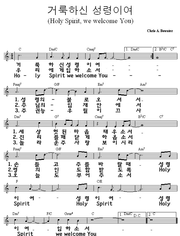 성령이여내영혼을 악보 영상 가사 Holy Spirit Fill My Soul 마커스워십 Markers Worship D코드