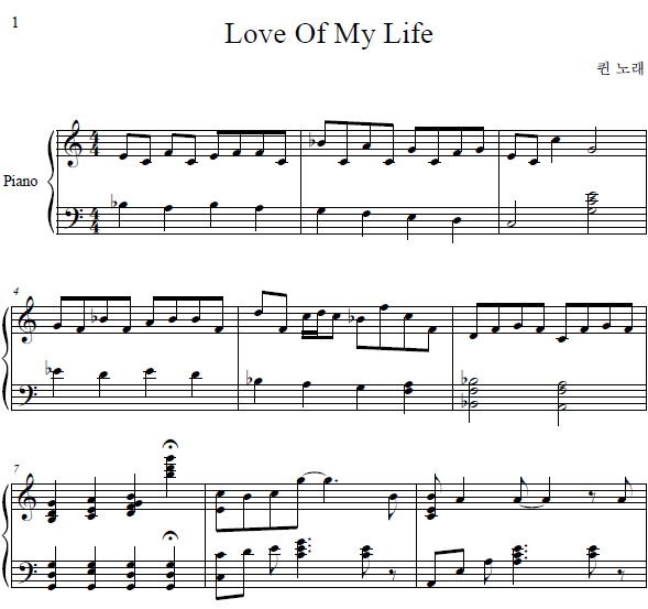Love Of My Life 피아노 악보 더더더 쉬운 버전 무료다운