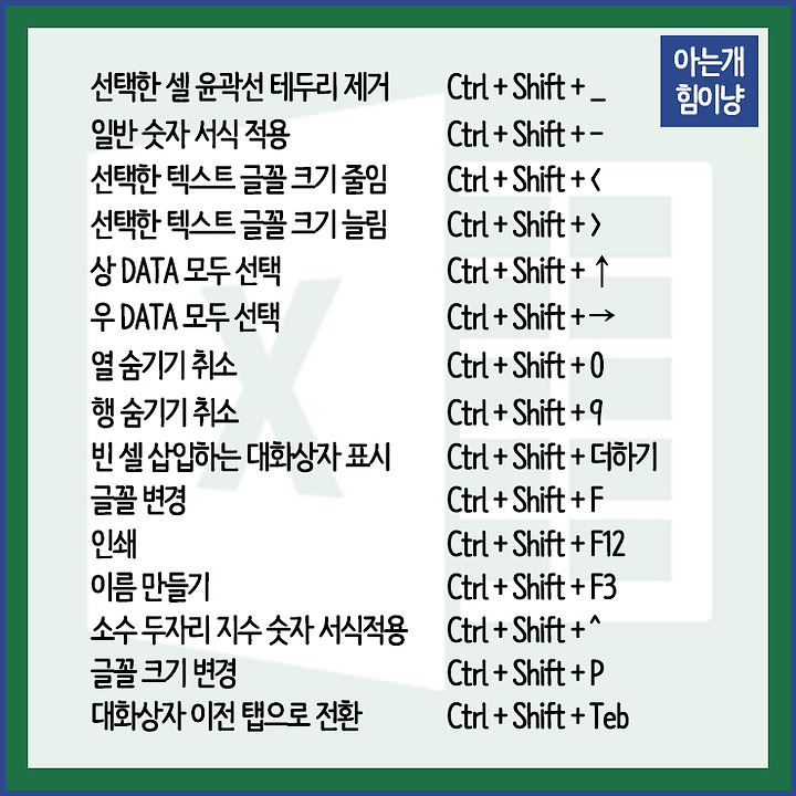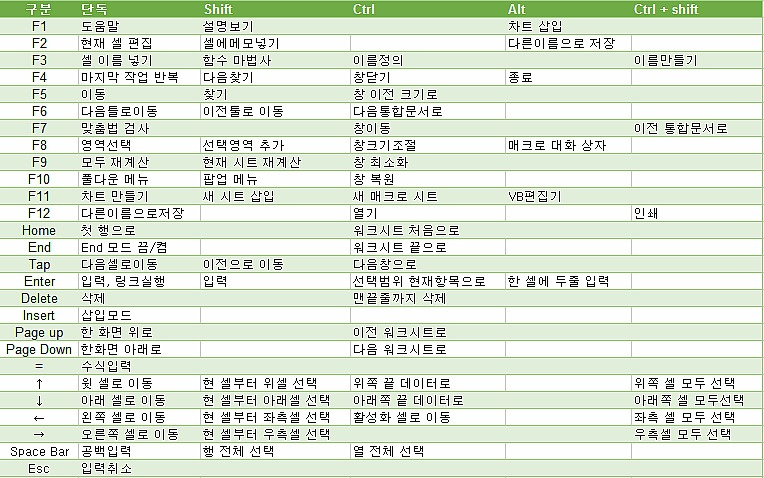Excel 단축키 엑셀 단축키 모음