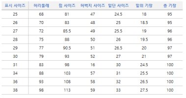 남자 여자 바지사이즈표 바지 사이즈 재느법