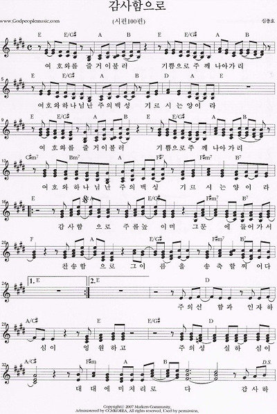 여호와를 즐거이 불러 Ppt 악보 감사함으로 마커스 심종호 파워포인트악보 E코드
