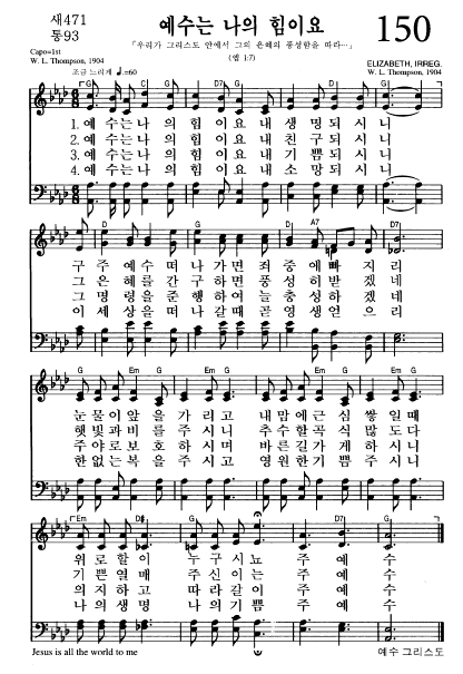 찬송 150장 예수는 나의 힘이요 새471 통93 찬93 경208 讚300