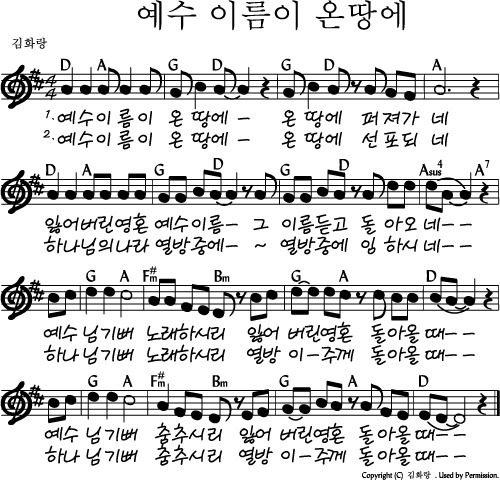 그이름 예수그이름 악보 영상 가사 송명희 D코드