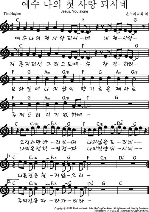 재건부평교회 Tim Hughes 예수 나의 첫 사랑 되시네 첫사랑 악보 여호와