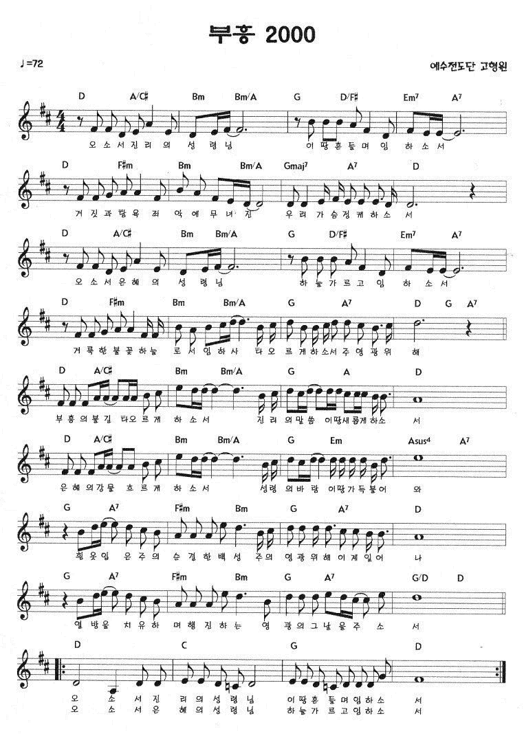 부흥 2000 오소서 진리의 성령님 C Key 악보 네이버 블로그