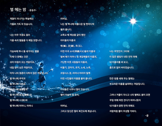 별헤는 밤 윤동주 좋은시 감동시 명시