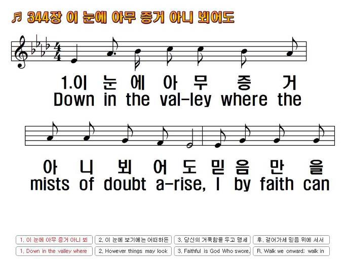 통합찬송가 한영 344장 이 눈에 아무 증거 아니 뵈어도 Down In The Valley Where The Mists Of Doubt Arise 새찬송가 545장 Nwc 무배경 Ppt악보 Praise Worship Service