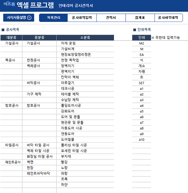인테리어 견적서도 이젠 엑셀자동화 양식으로 해결하세요