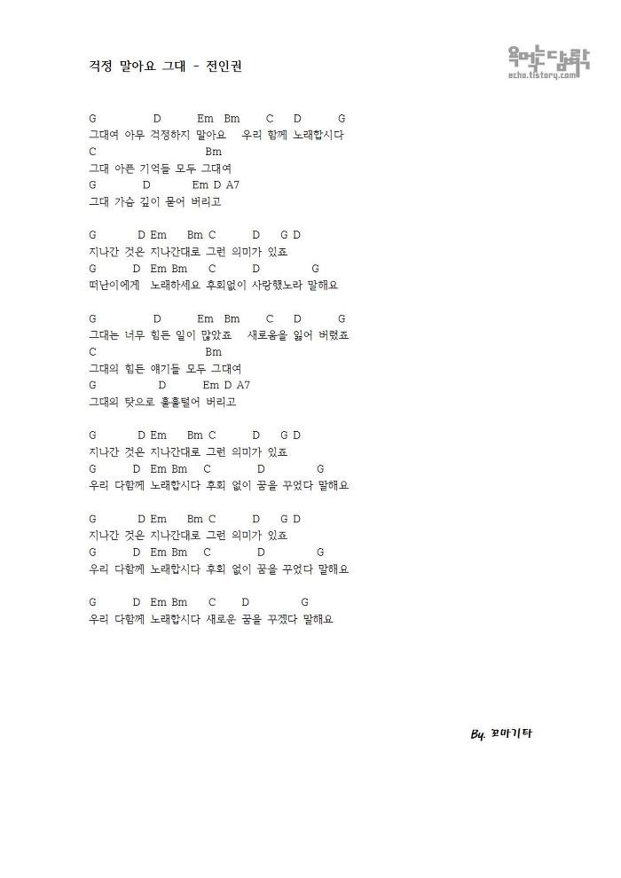 걱정말아요 그대 듣기 가사 기타 악보 Peen 블로그