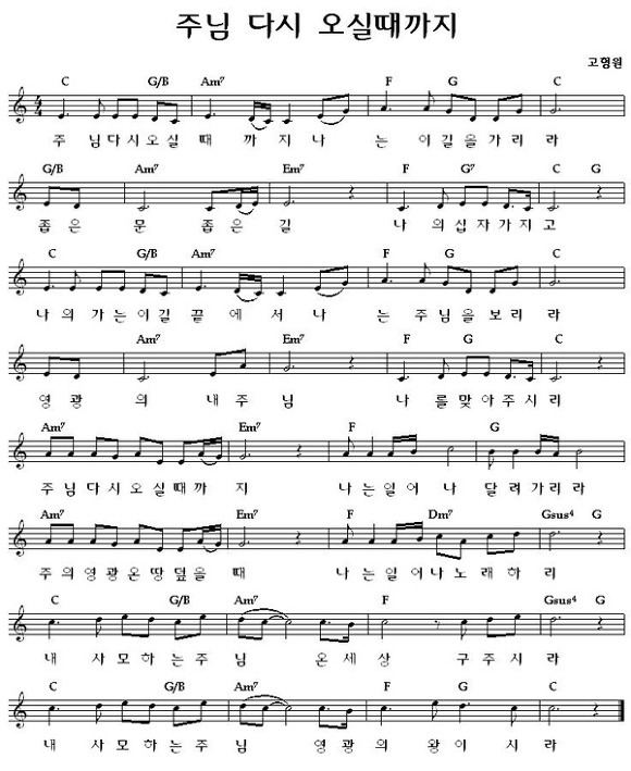 찬양 악보 Ppt C 주님 다시 오실 때까지