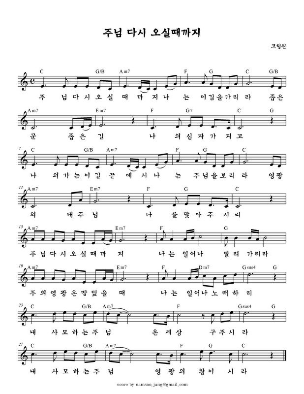 악보 게시판 고형원 주님 다시 오실 때까지 반주 악보 By 천정아
