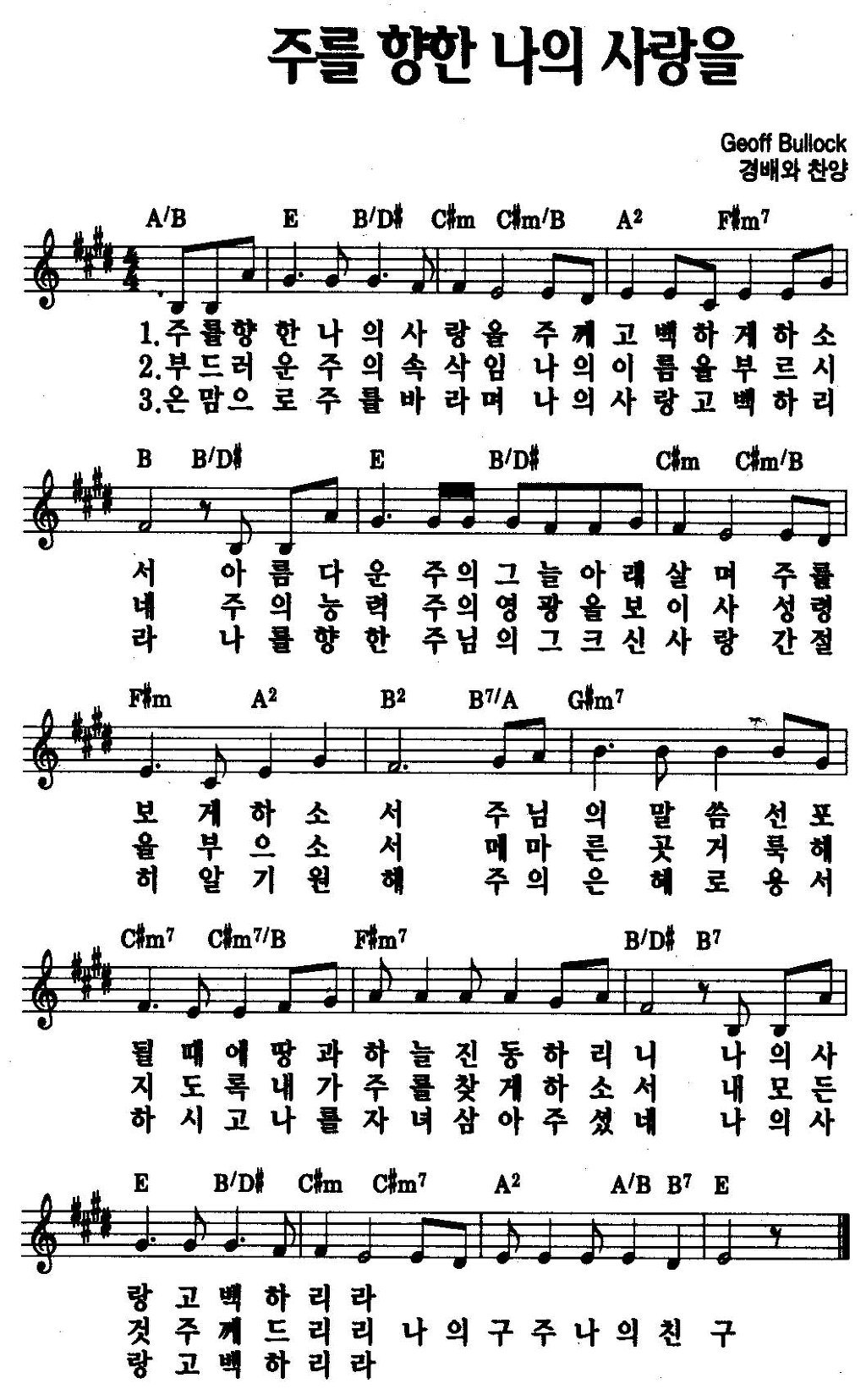 주를 향한 나의 사랑을 E F G Key 악보 네이버 블로그