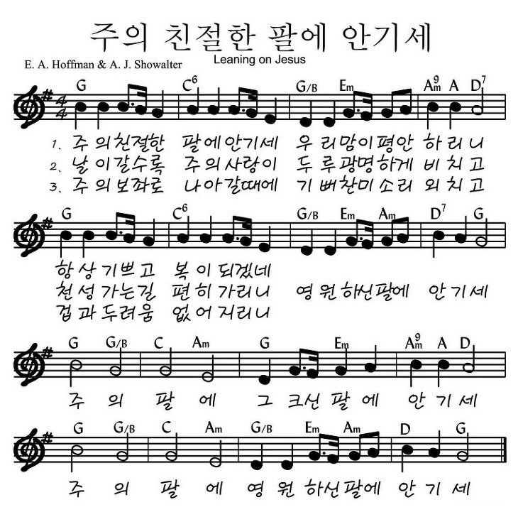 찬송가 찬송가 405장 주의 친절한 팔에 안기세 Ab코드 G코드 악보 네이버 블로그