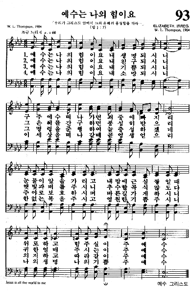스크랩 찬송가 93 장 예수는 나의 힘이요 찬양 악보