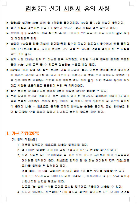 컴활2급 실기 도움 파일 모음 시험시 유의 사항 함수 총정리 파일 단축키 모음 파일 By Y