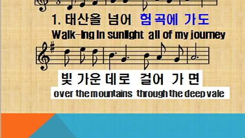 새찬송가 한영 445장 태산을 넘어 험곡에 가도 Walking In Sunlight All Of My Journey 통합찬송가 502장 Nwc 무배경 Ppt악보 Praise Worship Service