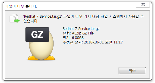 파일이 너무 커서 대상 파일 시스템에서 사용할 수 없습니다