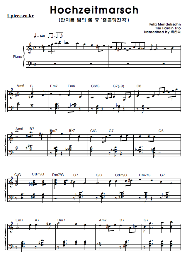 피아노악보 결혼행진곡 째즈버전 결혼식 연주 피아노악보 바이올린 첼로 플룻 통기타 클라리넷 피아노 뮤즈아카데미아