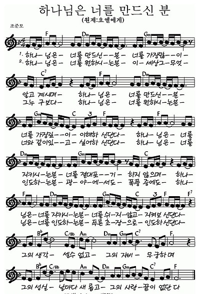 하나님은 너를 만드신 분 악보 입니다 네이버 블로그