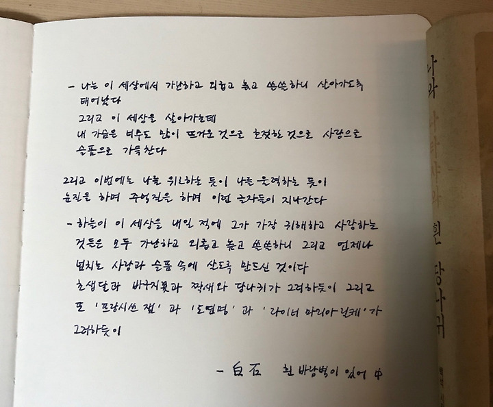 백석 흰 바람벽이 있어 일부 손글씨