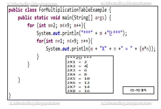 자바 반복문 For While를 이용한 구구단 네이버 블로그