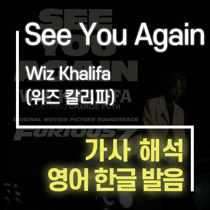 See You Again 분노의 질주 7 Ost Wiz Khalifa 위즈 칼리파 Feat Charlie Puth 찰리푸스 가사 해석 영어 한글 발음