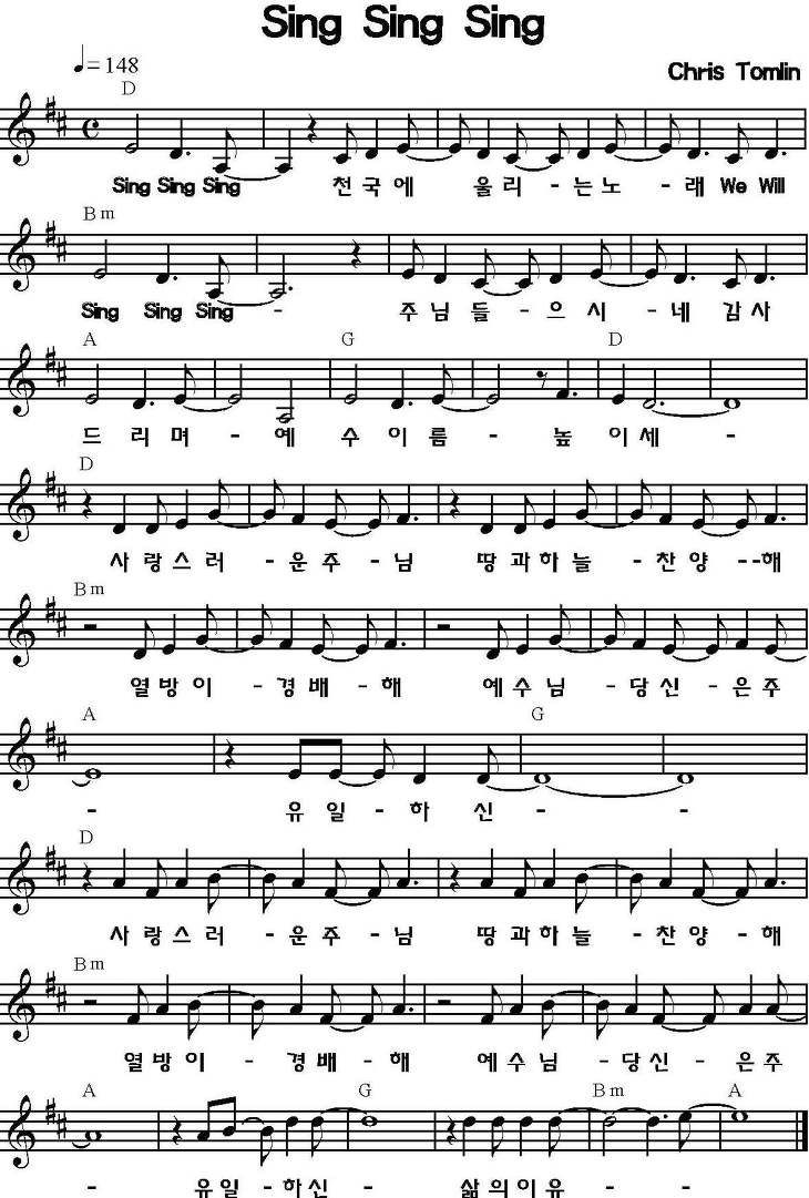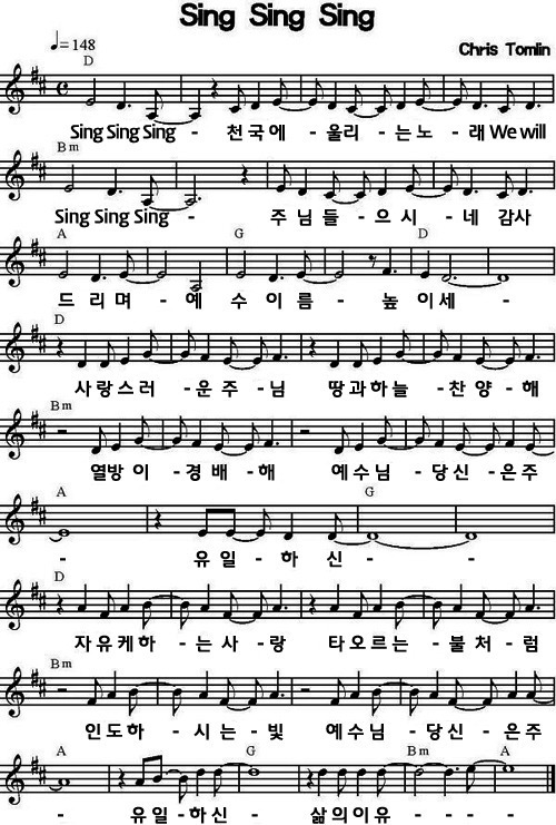 Sing Sing Sing 모두찬양해 악보 영상 가사 예수전도단 뉴제너레이션 천관웅목사님 D코드